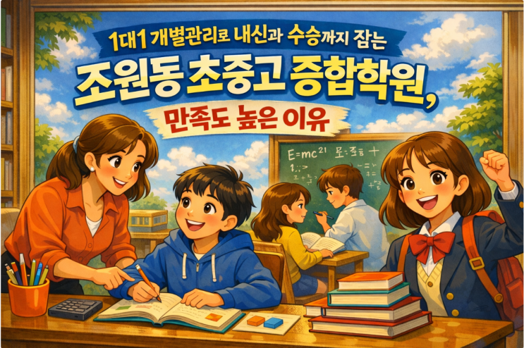 공부 이야기를 꺼내면 괜히 어깨가 움츠러들고, 문제집만 펴면 머리가 멍~해지는 학생들 많지요. “열심히는 하는데 왜 성적이 안 오를까요?” 이 질문, 정말 많이 듣습니다. 사실 공부가 어려운 게 아니라 나에게 맞지 않는 방법으로 하고 있어서 그럴 때가 많아요. 그래서 오늘은 학생들 눈높이에서, 왜 조원동 초중고 종합학원이 만족도가 높은지 차근차근 이야기해 보려고 합니다. 1대1 개별관리, 내 공부 속도에 딱 맞게 쏙쏙 교실에서 수업을 듣다 보면 “어? 방금 뭐라고 하셨지?” 하고 멍—해질 때 있지요. 이럴 때 질문 못 하고 그냥 넘어가면 이해는 흐릿~해지고, 공부는 점점 싫어집니다. 조원동 초중고 종합학원의 1대1 개별관리는....... <img src="https://blogthumb.pstatic.net/MjAyNjAyMDVfMTI4/MDAxNzcwMjYyMjE3MDM3.Aq898dP-17-r10BwEdj0pWr8hKJhFmd5g3-OybMMo4Ag.-d21tqTGTvnfq5EtKF3qfbC5eyrAVTG13BZBky1oQcwg.PNG/image.png?type=s3" />