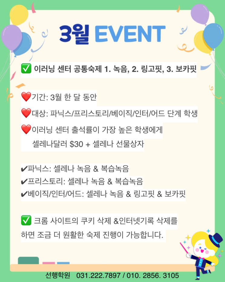 [삼성영어셀레나 선행학원] 3월 소식지/수원 권선동 선행초/세곡초/초중등 영어전문학원