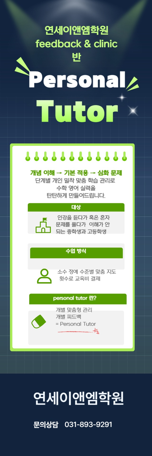 Personal Tutor 가 밀착 지도해 드립니다 질문이 있을때만 학원에 와서 질문해결! <img src="https://blogthumb.pstatic.net/MjAyNjAzMDlfMTM3/MDAxNzczMDU0MTQzMTcy.xlRfU26qhTNpqLnqnHsMwgYv715-k6gmfq-O8FO9sQcg.MJoxEh2XQWZcavesKhHCvAQ1cVpM9ZaIUD6YT_LrBZwg.PNG/banner_2.png?type=s3" />