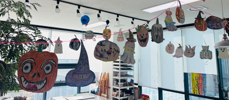 HYE YUM ART "천천히 그리는 그림.." "생각이 그리는 그림" 혜윰미술입니다 ,,, 혜윰의 할로윈데이엔... 랜턴 을 작업해보았어요~~~ 자유롭게 구상하고, 각자 계획한 오브제를 적절한 방법을 찾아 만들어나가는... 특히나 만들기 수업은 선생님은 참관인으로,,, 아이들이 주도적으로 작업을 해봅니다!!! 요즘 혜윰 친구들을 보면,,, 너무 많이 성장한 모습이 보여 뿌듯하답니다 과정샷만으로도 벌써 작품이네요!!! 더 예쁜 작품들이 수두룩빽빽하지만,,, 맛보기만 보여드려요~~~ㅎ 요렇게 학원안의 나무에도 대롱대롱 매달아보았어요!!! 올해도... 아이들 덕분에 할로윈의 분위기를 한껏 느껴봅니다 <img src="https://blogthumb.pstatic.net/MjAyNTExMTlfNDMg/MDAxNzYzNTMxOTM3OTk5.dd4lWovCuHTzoAtFJS-Ha7j1yr2bUrqSlY2s8sVXB_Mg.VQpOXcC1fEA6i_C8xANco239LOmwQVW5Sh6q24J4aWgg.JPEG/KakaoTalk_20251119_145517088.jpg?type=s3" />