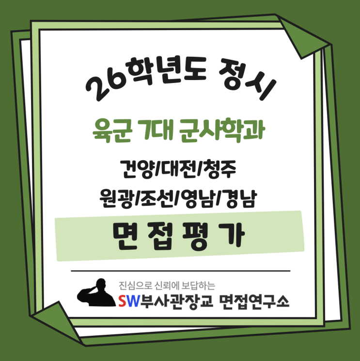 [2026학년도 정시] 육군 7대 군사학과 / 건양대 대전대 청주대 원광대 조선대 영남대 경남대 (SW부사관장교면접연구소)