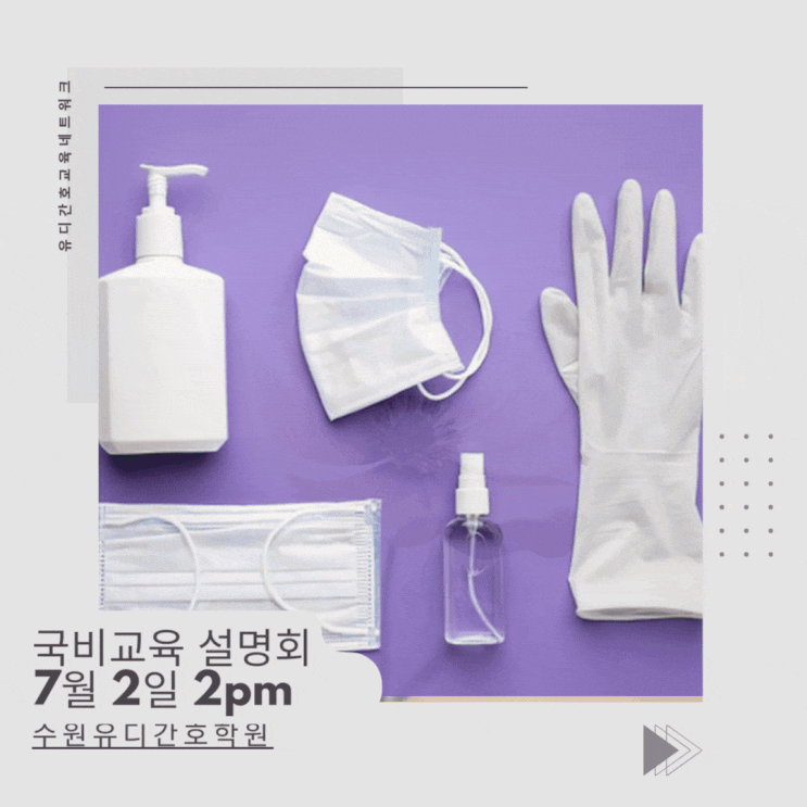 반갑습니다. 수원역에 있는 간호학원 수원 유디 간호학원입니다. 2026년도 벌써 상반기 중반을 넘어 뜨거운 여름의 하반기가 시작되는데요 저희 수원유디간호학원은 뜨거운 여름을 지나 시원한 가을에 취업/이직을 준비하시는 분들을 위해 간호조무사 교육설명회를 아래와 같이 진행합니다. [간호조무사 설명회] 일정: 7월 2일 (목) 2pm 대상자: 국비신청 희망자, 실업자(실업급여수급자 등). 근로자(이직 준비자), 대학교 졸업예정자, 주부 및 퇴직 예정자 등 국비훈련 받고 의료기관 등에 취업 희망자 소요시간: 약 1시간 (전체 설명회 종료 후 개별 상담 가능) 설명회 신청방법: 아래 링크를 클릭 후 신청해 주시면 됩니다. 2022년부터 7회 연....... <img src="https://blogthumb.pstatic.net/MjAyNjA0MTNfOTcg/MDAxNzc2MDYzMjUzOTU2.bCJ9UdBrvY3rmkM9B2LF5ZHuCV3R2KoGdqtHpGZM8gog.bCHtb5Ph8ozLOdZsG04vJUMjvZcfTg0J6f-LgslcdrQg.GIF/%3F%88%98%3F%9B%90%3F%9C%A0%3F%94%94%EA%B0%84%ED%98%B8%3F%95%99%3F%9B%90_%2823%29.gif?type=s3" />