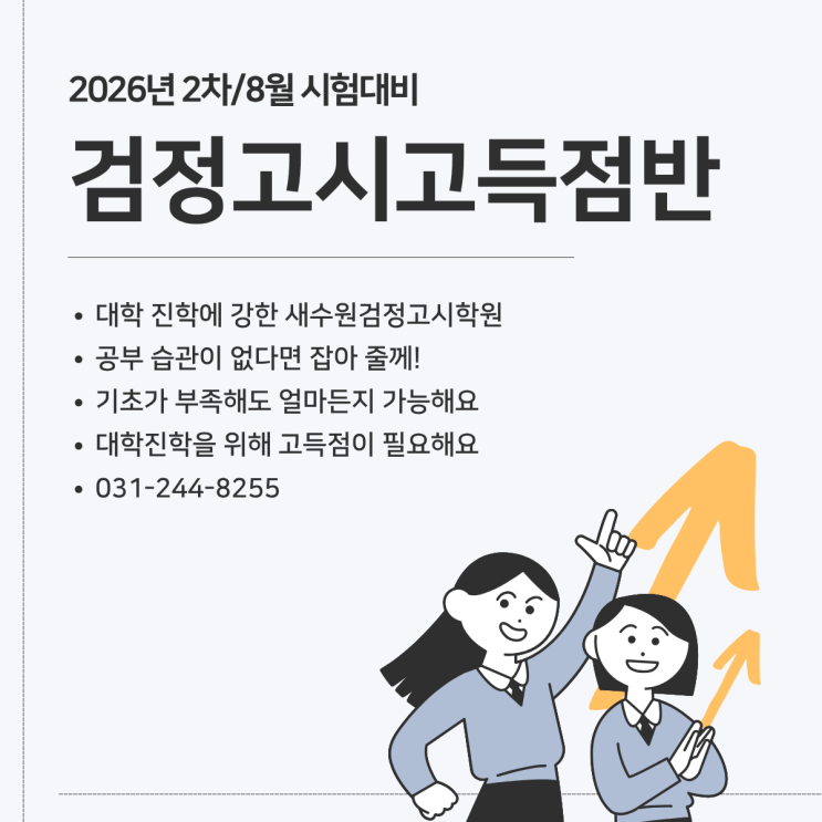 수원검정고시 2026 고졸검정고시 2차 시험 대비반에서 고득점을 만들어요.