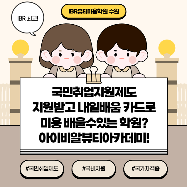 국민취업지원제도 지원받고 내일배움 카드로 미용 배울수있는 학원? 아이비알뷰티아카데미! 안녕하세요~! 오산미용입시학원 아이비알뷰티아카데미 입니다:) 3월 중반이 되어가면서 상반기가 점점 지나가는시점이네요. 새해계획중 많은것들이 있겠지만, 취업 및 창업을 준비하시는 분들 주목 !! 미용쪽 분야로 취업과 창업 준비를 시작했다면~? 첫번째로 국가자격증 취득을 알아보시죠~?! 최근 미용에 대한 수요는 더욱더 늘어나면서 소규모의 자본으로 창업을 시도하는 분들이 많아지면서 속눈썹이라는 아이템 하나만으로도 누구나 도전할수 있는데요~! 창업준비를 하기에 앞서 먼저 속눈썹을 배우기 위해서는 메이크업 국가자격증을 취득해야겠....... <img src="https://blogthumb.pstatic.net/MjAyNjAzMDVfMTM1/MDAxNzcyNjk4MjAwMDYz.ektbWWSihCY1h58krZbtYxsC0AwZv-n-nKXRuEtBFOkg.M6yb2yXR_2BOqCoGF--4yl27igE71Elu1lbZ2HKQbCQg.PNG/image.png?type=s3" />