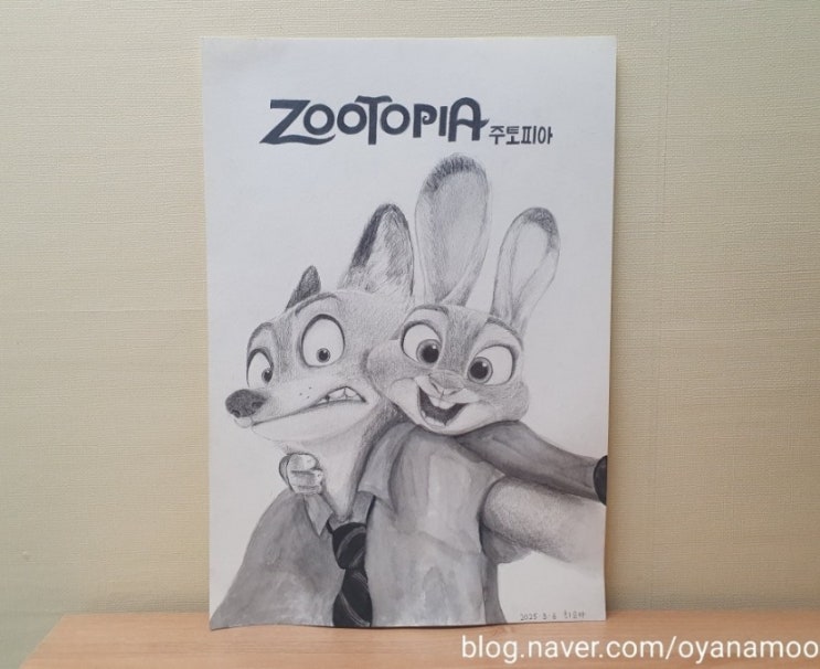 주토피아 그림 한 점 더 가져왔어요. 초등고학년부터 중학교 2학년까지 다녔던 친구의 재밌게 본 영화포스터 그리기입니다. 주로 연필을 사용한 소묘이고 여우와 토끼의 옷은 물감으로 그렸어요. '예체능은 조금 잘 한다고 하는게(전공)아닌것 같아요.'라는 말을 했던, 매사에 신중한 청소년이였어요. 한걸음씩 스스로의 생각으로 삶을 일궈나가기를 바란다.♡ <img src="https://blogthumb.pstatic.net/MjAyNjAxMjRfMjQ3/MDAxNzY5MjM3ODg4MDky.ZxxH8FEPtDNWHk2UohU3hHhbHzuTn2h-5clpQp-QBqIg.77LNljuRVsnLMdpItaJ4CY6gGiCmNWdGnUZuHVnTGhUg.JPEG/1769237887736.jpg?type=s3" />