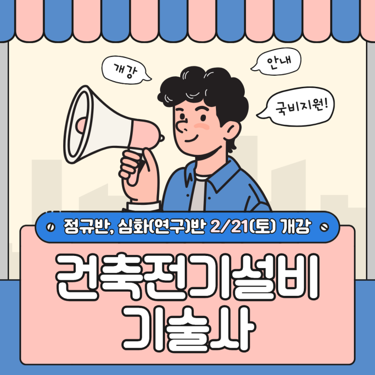 안녕하세요! 파워텔 수원전기학원입니다. 오늘은 건축전기설비기술사 필기시험 대비! 정규반과 심화(연구)반 개강 안내 드리려고 합니다. (국비지원 가능!) 개강안내와 함께 정규반과 심화(연구)반의 수업방식에 대해서도 같이 설명 드리겠습니다! 먼저 정규반입니다. 정규반은 기본이론서를 바탕으로 건축전기설비기술사 필기 시험의 이론 내용을 배우는 수업인데요, 건축전기설비기술사 필기 시험에 처음 도전 하시거나, 내용을 복습하며 반복학습하는 과정에서 수강하기에 적당한 수업입니다. 저희 파워텔 수원전기학원만의 수강특전으로 강의영상을 제공해 드리고있기때문에 무한 반복학습이 가능하답니다! 게다가 이론수업에 더해 매주 모의....... <img src="https://blogthumb.pstatic.net/MjAyNjAxMjhfMTk2/MDAxNzY5NTc0MzQyODQ2.TY__qiAeAHU1HmID8RigplB9SUangYVZctQZGV-VSr0g.wfXZhlJwx-67P9kzz4-w6en8MQumShx6QonlFbZr_JUg.PNG/5.png?type=s3" />