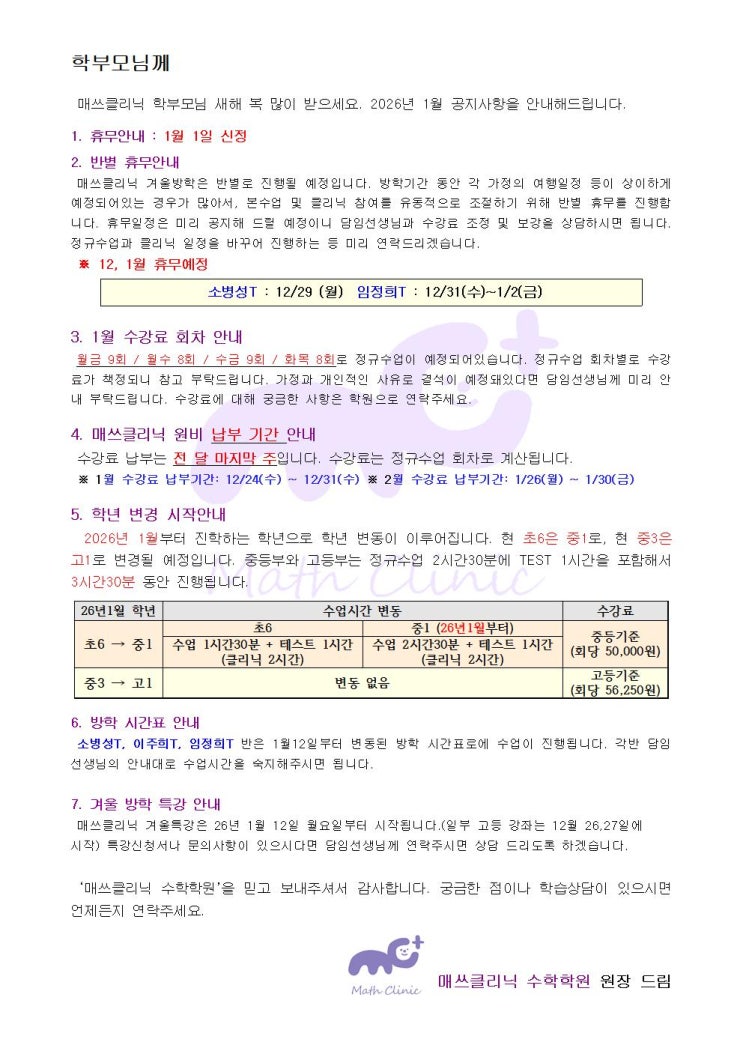 2026년 1월 안내문