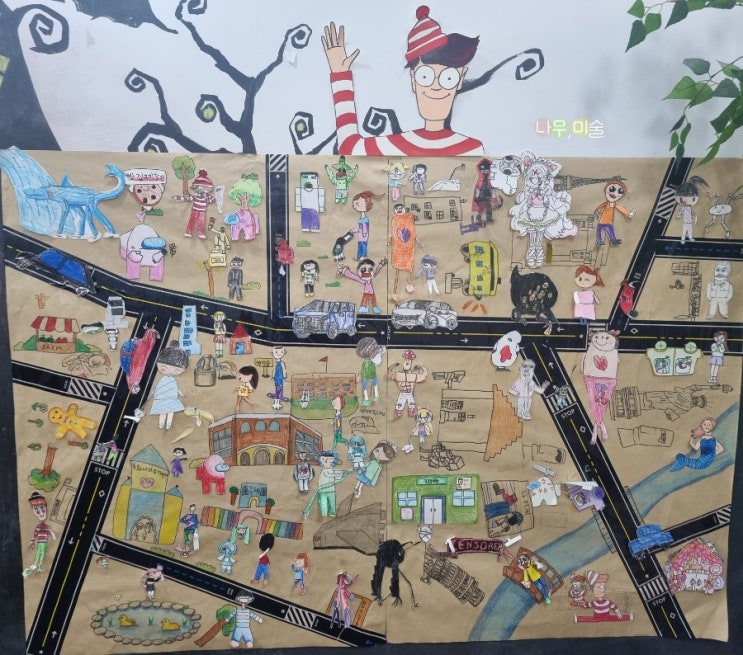 나무쌤입니다. 추운 겨울, 따뜻하게 잘 보내고 계시죠? ☃️ 이번 작품은 다 같이 만든 ‘월리를 찾아라’ 단체작이에요. 마을 지도를 그리고, 건물도 만들고, 각자 그리고 싶은 캐릭터를 하나씩 맡아서 붙여 완성했어요. 수업 중간중간 남는 짜투리 시간마다 조금씩, 조금씩 더하다 보니 어느새 한 장의 큰 마을이 되었어요. 완성하고 나서는 그림 감상보다 “월리 찾기”가 더 바빴던 시간. 아이들 눈은 점점 커지고, 교실은 갑자기 숨은그림찾기 대회장이 됐답니다. 함께 만들어서 더 재미있고, 같이 웃어서 더 기억에 남는 작품이에요. ☆수업시간 오후 2시 ~ 6시30분 (60분 수업) 주 1회 ~ 3회 수업 ☆ 수업연령 유치부(5세~) 초등부 중등부....... <img src="https://blogthumb.pstatic.net/MjAyNjAxMjJfMTIg/MDAxNzY5MDc4MTg5ODIz.0QS00woWYQasguVkr0qBscIWrTRJ_ZVeqZwdC_wJtmEg.3fOsq1oC5ztflV3ky1-xyldk2FH0YQzWKNweTw66tKsg.JPEG/900%A3%DF1769078188898.jpg?type=s3" />