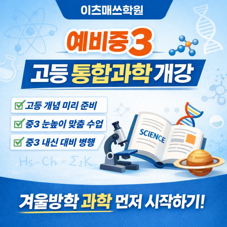 예비중3 고등 통합과학|중3 겨울방학 과학 준비는 이츠매쓰학원