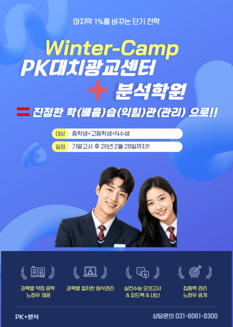 [알림]PK대치+분석!!진정한 학+습+관의 Winter Camp!! 강사가다르다, 관리가 다르다!!