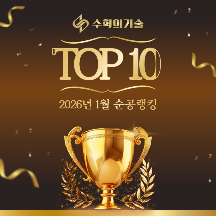 2026년 1월 순공랭킹 발표! 안녕하세요! 수학의기술입니다~ 오늘은 2026년 1월 순공랭킹을 공유합니다. 이번 달 순공랭킹은 그 어느 때보다 의미 있는 기록이라고 할 수 있는데요, 바로 방학 특강 기간이 본격적으로 시작되면서 전체적인 순공 시간이 확연하게 증가했기 때문입니다. 지난달과 비교해보면? 먼저, 12월과 1월의 순공 시간 변화를 간단히 비교해볼게요. 2025년 12월 (학기 중) 평균 일일 순공 시간 : 약 2~3시간 TOP권 학생 누적 순공 시간 : 70~80시간 학교 수업 + 내신 준비 병행으로 공부 시간이 분산 2026년 1월 (방학 특강) 평균 일일 순공 시간 : 4~6시간 이상 TOP1 순공 시간 : 201시간 31분 TOP10 전원 100시간 이상 순공 달....... <img src="https://blogthumb.pstatic.net/MjAyNjAyMDVfMjU0/MDAxNzcwMjg4NDc4Njc1.a4IEk0rkb6Dk372_V0zw7zl61caBYn7u2MjCXz7FchEg.qzhNArfSJJJggebv69_DVXxc5QMvRUycG1HXp9z5uSEg.PNG/%C0%BA%BB%E7%C1%A1_%BC%F8%B0%F8%B7%A9%C5%B7-%BD%E6%B3%D7%C0%CF-002.png?type=s3" />