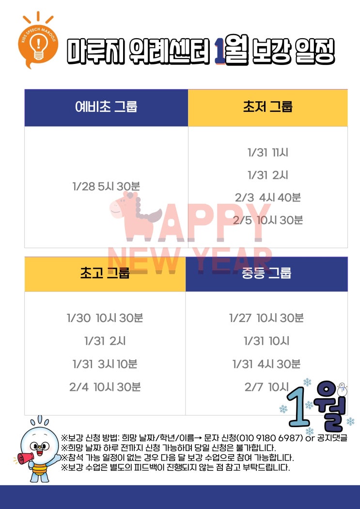 위례센터 1월 보강수업 공지