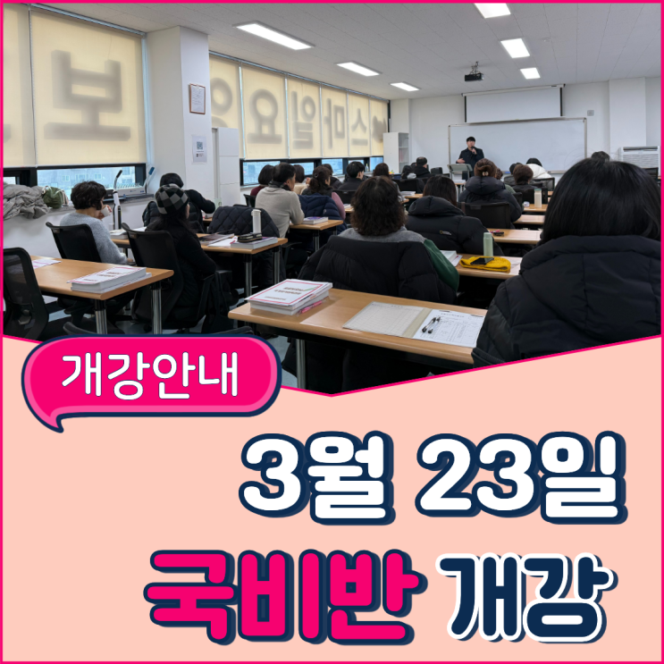 안녕하세요! 스마일한 이모작 인생을 함께 하는 스마일요양보호사교육원입니다 오늘은 많은 분들이 문의 주고 계신 3월 23일 개강반 모집 안내를 드리려고 합니다. 요양보호사 자격증 과정은 단기간에 취득 가능한 국가자격증으로, 중장년 재취업부터 인생 2막 준비까지 만족도가 매우 높은 과정입니다. 특히 저희 교육원은 ✔ 기수별 마무리 행사 진행 ✔ 수료생 추천으로 등록하시는 분이 많은 교육원 ✔ “여기로 오길 잘했다”는 후기가 많은 교육원으로 많은 분들께 선택받고 있습니다. 실제로 수강생분들께서 가장 많이 하시는 말씀이 “여기로 등록한 게 행운이다” “인생의 터닝포인트가 됐다”는 말씀입니다. 3월 23일 개....... <img src="https://blogthumb.pstatic.net/MjAyNjAyMDNfNjQg/MDAxNzcwMTA2MDgzOTg3.FDtLDQgvOik281tGvfBnc7dIJPsUpltEsq-_RMmyb7Ug.qJgIhRJTFLetnIYnLTtHhdLF0SdxjJRZuvbAysj6ixYg.PNG/%C1%A6%B8%F1%C0%BB_%C0%D4%B7%C2%C7%D8%C1%D6%BC%BC%BF%E4._%2823%29.png?type=s3" />