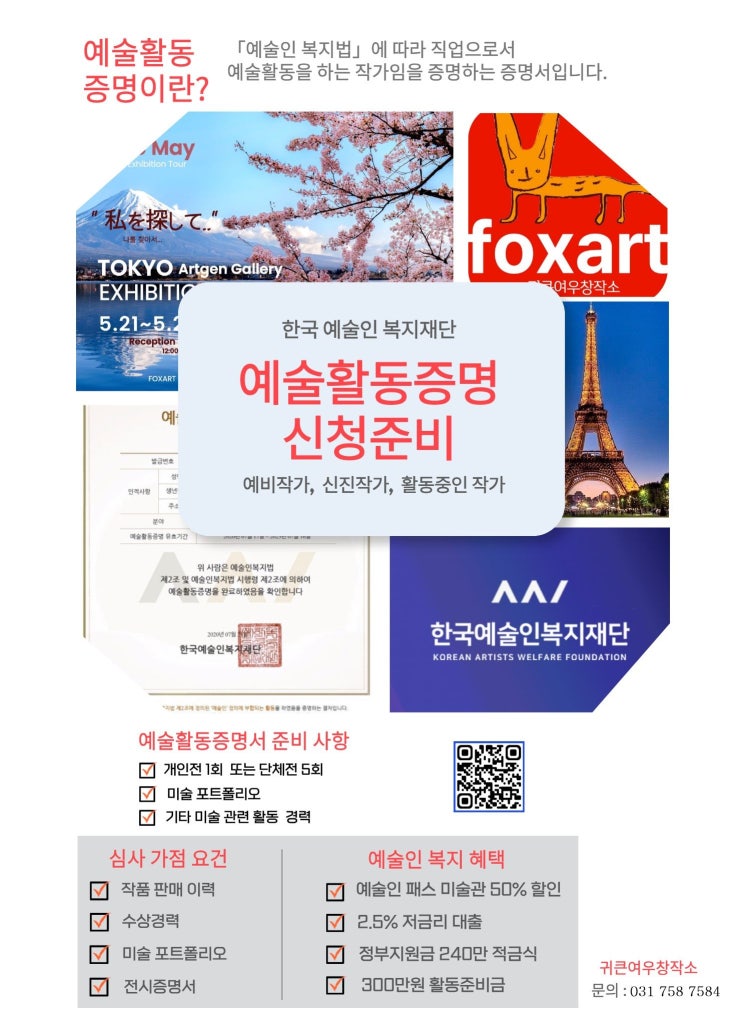 예술활동증명 신청 준비, 예비작가부터 활동작가까지(주)FOX ART 귀큰여우창작소