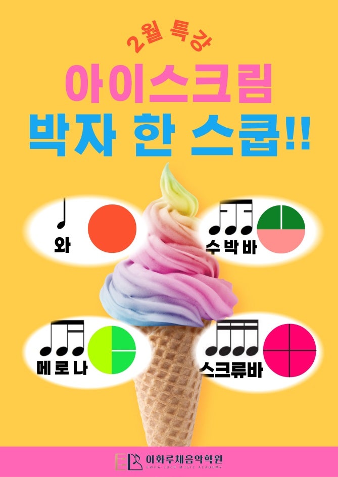 위례음악학원.이화루체음악학원 ■2월특강 아이스크림 박자 한 스쿱!!