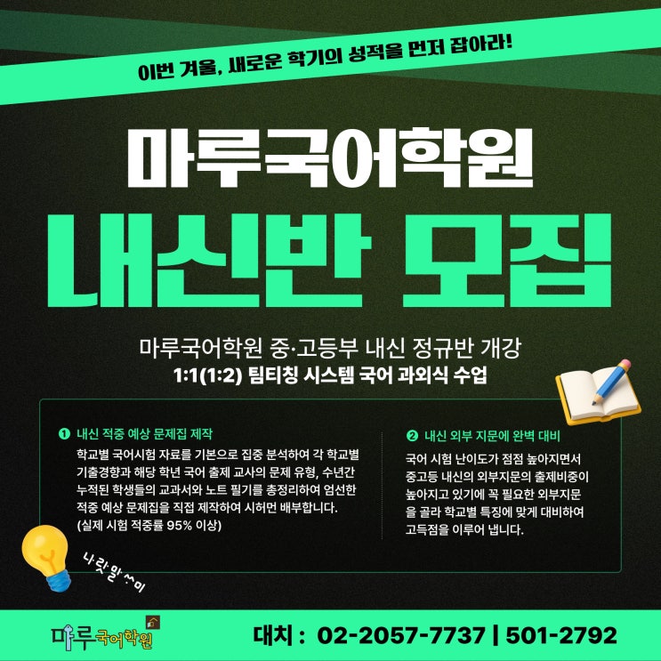 [마루국어학원] 내신 대비 정규반 모집 안내