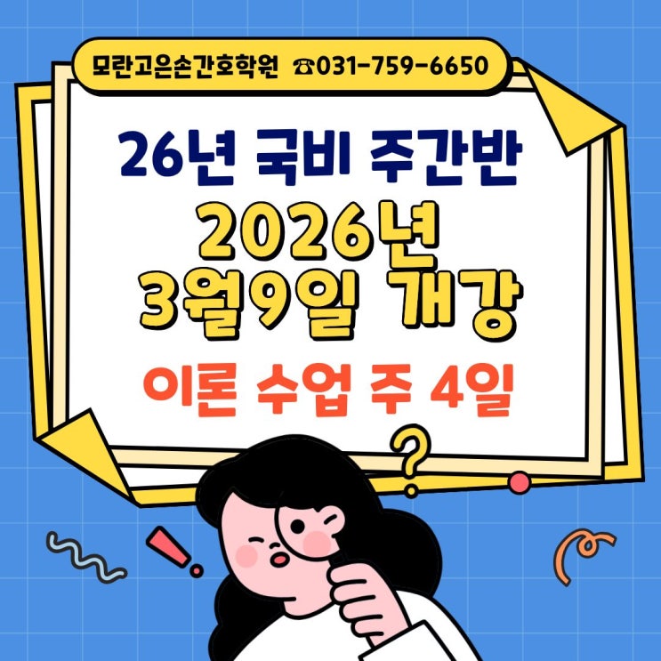 성남시 유일 이론 수업 주 4일!! 국비지원 간호조무사 교육 2026년 3월 9일 개강!! 국비로 간호조무사 교육 수강을 원하는데 개인 시간이 없어서 시작하기 망설이거나 주 5일 수업 시간이 힘들어 고민이셨던 분들 계시나요? 모란고은손간호학원에서는 이론 수업을 주 4일로 진행합니다 간호조무사 자격증 취득을 위해서는 이론 740시간과 현장 실습 780시간을 이수해야 합니다 1년이라는 긴 교육 시간 중 이론수업을 하는 6개월동안 주 4일만 수업하고 금, 토, 일 3일은 휴식으로 여유있게~ 공부도 휴식도 둘다 중요하니까요 모란고은손간호학원과 함께 간호조무사 자격 취득을 시작해보세요! [2026년 3월 국비/일반 주간반] ⭐개강일 : ....... <img src="https://blogthumb.pstatic.net/MjAyNTEyMDNfMjUz/MDAxNzY0NzM3MTE0NTI5.RT3kConWBzliI9MvWkBxUGgdOMFeycheRdOzea6WkJQg.pxGNHEgLhb6B_BOK4rT9dufJ1bADjQEZfxY9NioDtIIg.JPEG/%C1%A6%B8%F1%C0%BB_%C0%D4%B7%C2%C7%D8%C1%D6%BC%BC%BF%E4._%288%29.jpg?type=s3" />
