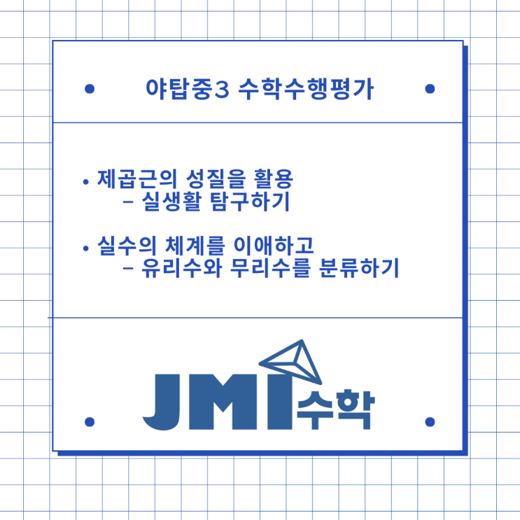 야탑중 수학 - 수행 평가 제곱근 / 무리수 -JMI수학학원