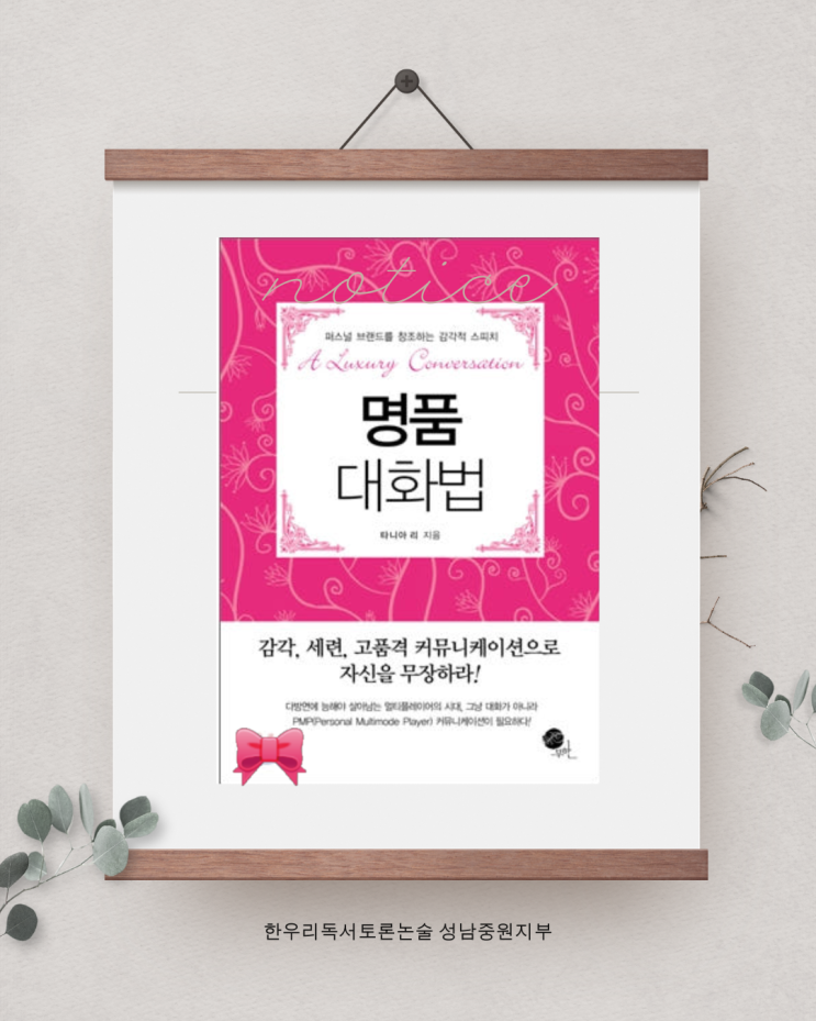 책 소개 제목 : 명품 대화법 지음 : 타니아 리 출판사 : 도서출판 무한 대화는 단순한 말하기가 아니라 나의 가치를 만드는 퍼스널 브랜드라는 관점에서 설명한 자기 계발서이다. 『명품 대화법』 핵심 정리 우리는 하루에도 수없이 많은 말을 하며 살아간다. 하지만 같은 말을 해도 어떤 사람의 말은 마음을 움직이고, 어떤 사람의 말은 상처를 남기기도 한다. 왜 이런 차이가 생길까? 커뮤니케이션 전문가 타니아 리의 책 <명품 대화법>은 바로 그 차이를 <대화의 품격>에서 찾는다. 이 책은 말을 잘하는 기술보다 더 중요한 사람의 마음을 얻는 대화법을 알려준다. 대화는 ‘나를 브랜드로 만드는 기술’ 저자는 현대 사회를 개인....... <img src="https://blogthumb.pstatic.net/MjAyNjAzMTZfMTAw/MDAxNzczNjMzMjYzNzgy.Oaxc1MAUdts-KUl_-rHroZR6YTKjiR_v3AKUOwqxlmYg.gLMP_dG2rxIR_ytxGOlm8ttNalFXmu-Q40PWVoSBNFEg.PNG/%B8%ED%C7%B0%B4%EB%C8%AD%B9%FD2.png?type=s3" />
