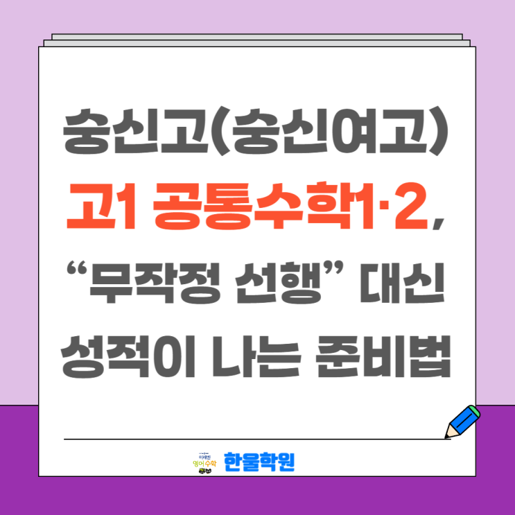 숭신고(숭신여고) 고1 공통수학1·2, “무작정 선행” 대신 성적이 나는 준비법 - 한울학원