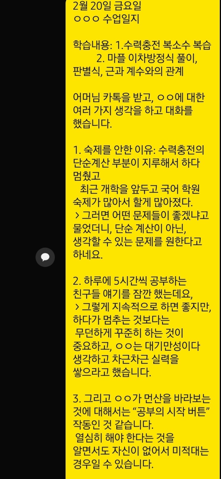 이매동 수학학원 실력영수학원에 오시기 전에 소수정예 실력영수학원이라는 공식블로그카테고리 여섯번째 순서인 6. 막강한 수업일지에 대하여 연재 하여 글쓰기를 하는 중입니다. 상담을 마치고 학원에 다니기 시작하는 학부형들은 처음 이매동 수학학원 실력영수학원에서 드리는 수업일지를 받아보고는 놀라지 않을 수가 없다고 합니다. 수업일지가 수업태도 뿐만아니라, 어떻게 학생을 케어하는지에 대한 과정이 상세하게 기술이 되어 있다고 합니다. 그런 관계로 처음에는 이런 일지를 받게 되면 적응이 안되는 일이 생기기도 한다고 합니다. 그런데, 이런 수업일지를 이매동 수학학원 실력영수학원에서는 수업이 끝나는 날 매일 보내준다는....... <img src="https://blogthumb.pstatic.net/MjAyNjAyMjNfMjkz/MDAxNzcxNzkyNzYyMDA0.Ca5dfnyxfpzDRyhFYkevfKqiqaYw4GwHZeUefBavG6Ig.uHu36PB0M2KIx8jO2K-jLKskimhkjY5CIEABmhPb5Ncg.JPEG/900%A3%DFScreenshot%A3%DF20260223%A3%DF053158%A3%DFGallery.jpg?type=s3" />