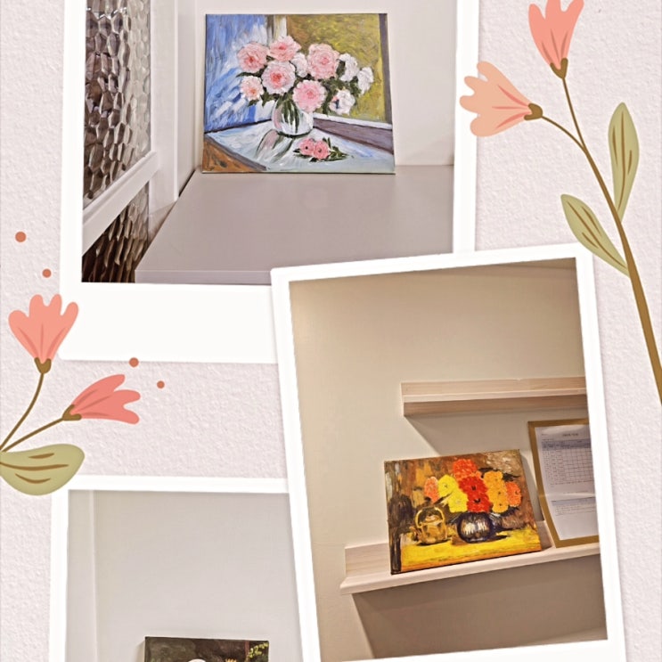 출근 길에 무인 꽃집에서 파는 비누꽃 화분 데려옴. 여기저기 소품사진 찍어봄. 여기 저기 전시된 그림들은 모두 나의 어머님 작품들이다. <img src="https://blogthumb.pstatic.net/MjAyNjAyMjBfMTUg/MDAxNzcxNTYwMjE1NTU2.KVPvP-waSC2uOqJ8gSUqzyRr0h2ZQNVvu7SAvh_l7ycg.2pI-0kp1ozKGc_yl8ukKPZ3ZO6rweB2VtodLTOD5jTAg.JPEG/900%A3%DFIMG%A3%DF20260220%A3%DF130045%A3%DF214.jpg?type=s3" />