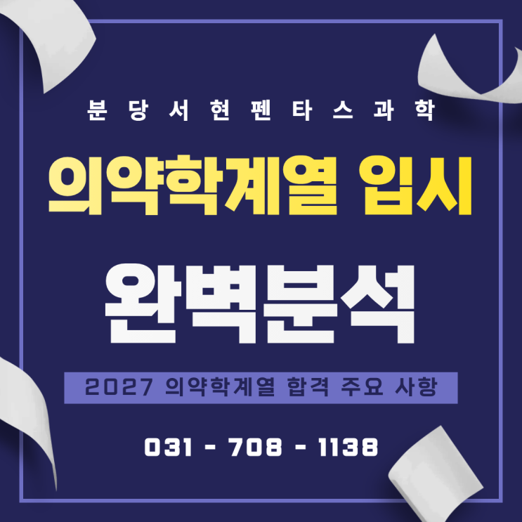 분당지역 학생들의 2027 의약학계열 합격 전략!!