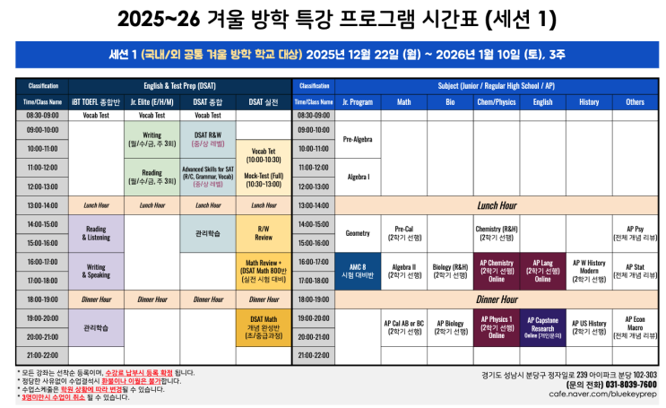 ✨ 2025-26 블루키 프렙 겨울 방학 특강 Session 1 안내 ✨