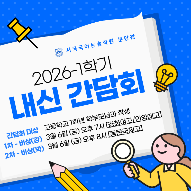 [분당관] ★고1 내신 간담회: 3/6(금) 19시-비상(강), 20시-비상(박)★ 26-1학기 내신 시간표(고1~3) + 인문논술 [분당정자동국어논술학원-서국국어논술학원]