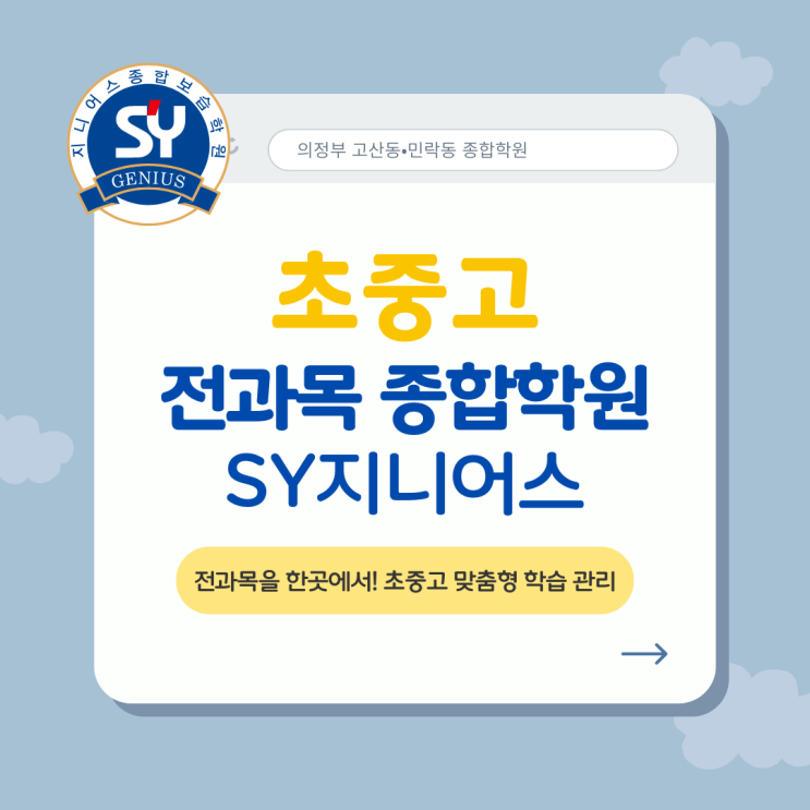 의정부 고산동 종합학원 SY지니어스, 초중고 전과목을 한곳에서! 초등부터 고등까지 맞춤형 학습관리
