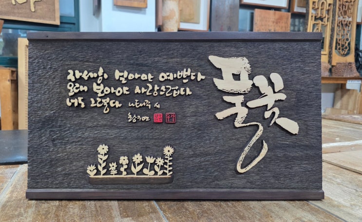 풀꽃,서각학원:소천목공예전문학원(목조각,목부조,목공예,서각)의정부,공방 우드카빙,원데이클래스,40년 지도경험 꽃피우다.