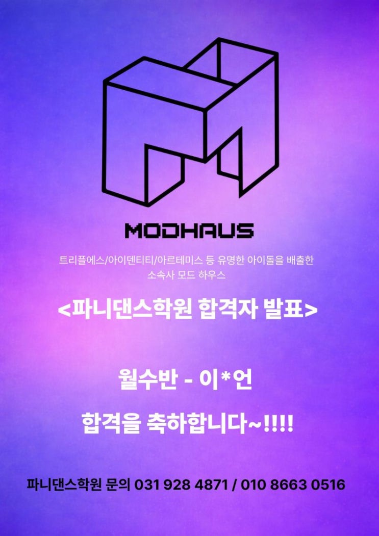 열심히 연습한 우리 이쁜이 모드하우스 엔터 합격을 축하드립니다!! 아이돌의 꿈을 현실로 이루어 드립니다^^ 파니댄스로 오세요!!! 월수 - 3시30분 4시30분 5시30분 화목 - 3시30분 4시30분 5시30분 6시30분 토요일 - 11시 - 12시 - 1시 문의 01086630516 <img src="https://blogthumb.pstatic.net/MjAyNjAzMTZfMTg1/MDAxNzczNjUxNTkwOTA5.Q3n8QdcsL_lgIgRyGlMCIZyumRsnJbazzE-xppgCUnMg.r3AQTx8xM3XDyuF07Q2kGdtl48YxjbGrTaYzY5YBk4og.JPEG/IMG%A3%DF4540.JPG?type=s3" />
