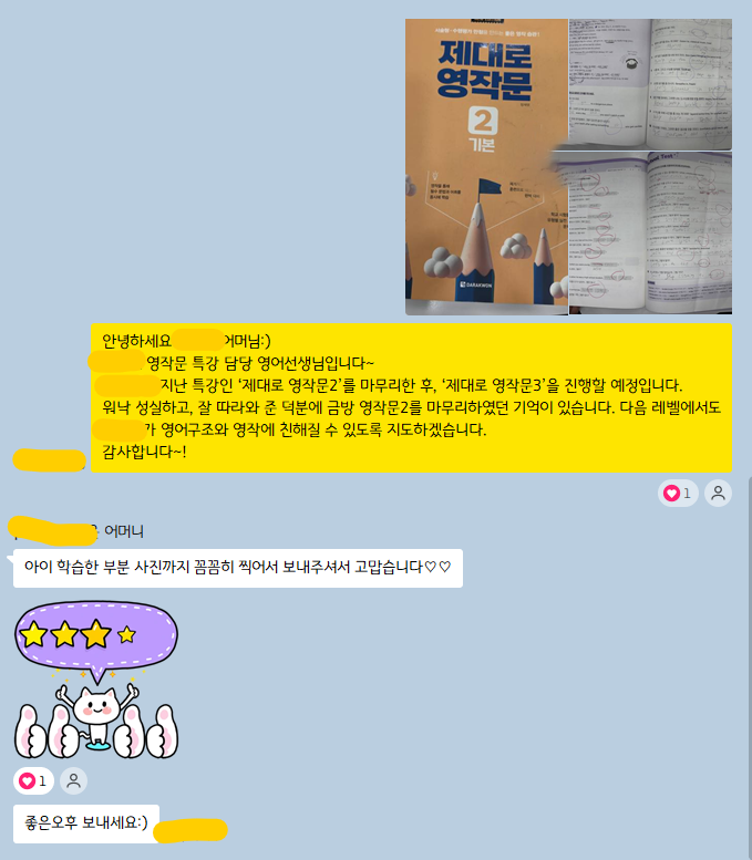 학부모님이라면 자녀분의 학원을 선택할 때 많은 고민을 하시게 됩니다 과연 선택한 학원이 내 아이와 잘 맞는지 선생님과의 케미는 어떨지 등등 많은 생각을 하시게 됩니다 이러한 고민은 조금이나마 덜어드리고자 저희 학원에서는 일주일 무료 수업을 진행하고 있습니다 학생이 등원하여 수업을 경험해 본 뒤 자신에게 맞는다고 느껴질 경우 정식으로 등원하면 됩니다 만약 자녀에게 맞지 않는다고 판단되신다면 부담없이 다른 학원을 알아보시면 됩니다 또한 일주일 수업후, 저희 역시 학생과의 궁합이 맞지 않는다고 판단될 경우 솔직하게 다른 학원을 권해 드리고 있습니다 공부를 잘하지 못하는 것은 문제가 되지 않지만 숙제를 지속적으로.......