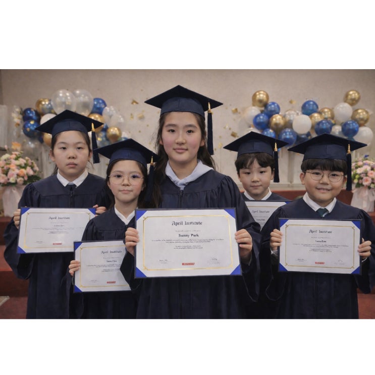 김소윤 Sophia, 홍설 Pink, 박서인 Sunny, 류이준 Allen, 임시우 Daniel April의 최고 레벨인 Junior Master 과정을 훌륭히 마치고 졸업을 맞이한 여러분, 진심으로 축하합니다. 그동안 열심히 노력하고, 포기하지 않았던 열정에 큰 박수를 보냅니다. 여러분의 성장은 분명 값진 결과로 이어질 것입니다. 이제 새로운 시작인 청담어학원에서도 지금처럼 성실하고 자신감 있게 학습하며 더욱 멋지게 성장하길 응원합니다. 앞으로의 모든 걸음을 April의 모든 선생님들이 힘차게 응원합니다! <img src="https://blogthumb.pstatic.net/MjAyNjAzMDRfMTgy/MDAxNzcyNjIwOTk4OTQw.FzEnhp8rGn8TqvnZLDIFbuUPilyWe9e7q18rcBD-Jqgg.E495hlddm0QnVjeJSXUF3_WmicdxrUWT762Yq_YyTsUg.JPEG/%C1%B9%BE%F7%BB%E7%C1%F8.jpg?type=s3" />