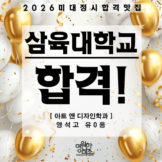 2026학년도 미대 합격을 진심으로 축하합니다! 정시합격 맛집인 의정부 영원한미소 입시 미술학원이 [ 삼육대 아트 앤 디자인학과 ]