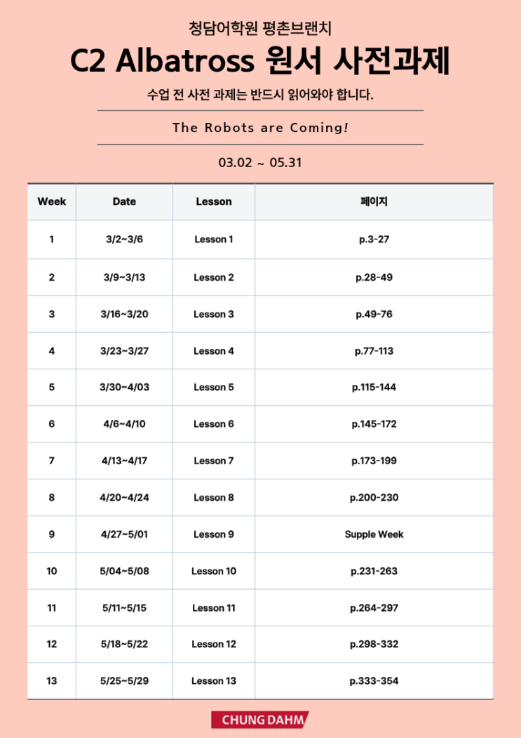 [청담어학원 평촌브랜치] C2 Eagle / Albatross / Albatross+ / Master _ 사전 과제 안내