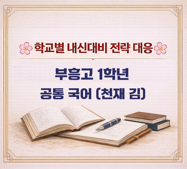 학교별 내신대비 전략 대응 부흥고 1학년 / 공통 국어(천재 김) 1️⃣ 시험 범위 (공통 국어/ 문학, 문법) ● 2022 개정 교육 과정 두 번째 시험! ● 교과서의 문학, 문법 범위 출제 + 프린트물 추가 ● 문학: 교과서 일부 범위 출제 예상 ● 문법: 음운변동 출제 예상 2️⃣ 시험 특징 ● 문학: 개념 + 지문 독해 + 외부 작품 비교 문제 출제 ● 문법: 문법의 정확한 개념 확인 문항 출제 ● 1학년 첫 시험이라 전체적으로 평이하게 구성 ⇒ 문학: 정확한 개념, 정확한 독해력에서 일부 점수 차이 발생 ⇒ 문법: 개념 간 정확한 구분 및 비교 문항에서 점수 차이 발생 ● 문학: 외부 작품 2~4개 정도 출제 ⇒ 핵심 변별력 요소 ●....... <img src="https://blogthumb.pstatic.net/MjAyNjAzMTlfMTk3/MDAxNzczOTAzMTI1Mjcx.QjdwAff3hWTck_4kSIpCHz92cBm8MOp_QkhCooRNEWgg.pBHLs4at4cjjT0ljG_dvZ7A4dVjhjx8_tU1JdfReCNcg.PNG/20260319_155112.png?type=s3" />