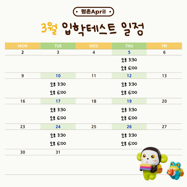 [평촌 April] 3월 30일(월), 4월(A2ㆍB2) 개강 안내