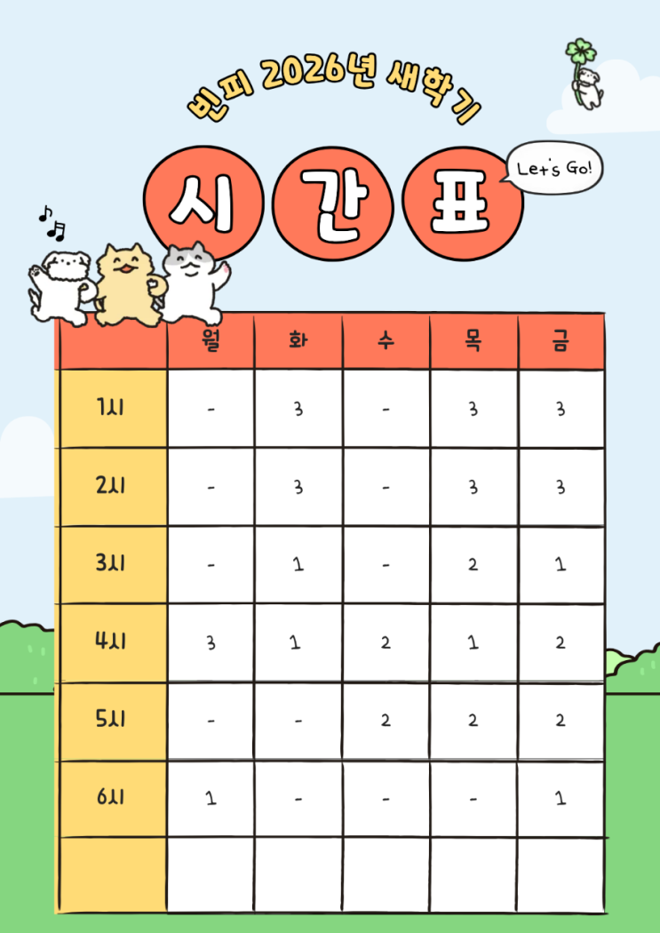 관양동빈피아노 | 3월 새학기 시간표❤️