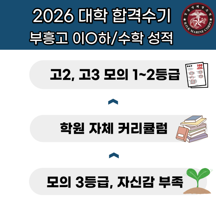 평촌학원가 수학 성적 향상 합격수기 /두려움을 깨고 고난도 문제를 스스로 풀게 된 과정 해병수학 다니기 전, 나의 수학 성적이나 상태는? 다닌 후의 변화는 어떠한가요? 수학 성적이 낮은 상태로 발전이 없었고, 잦은 실패로 수학 과목에 대한 두려움이 있었습니다. 수학 공부를 꾸준히 하기는 했으나 어려운 문제를 스스로 풀어보거나 깊게 파고들어 본 경험이 없어서 높은 점수를 받기엔 한계가 있었습니다. 이에 변화를 위해 해병수학에 다니게 되었고 꾸준한 기초 개념 암기와 반복적인 문제 패턴 학습, 학원 자체 모의고사 문제집 분석을 통해 공부하였습니다. 이후 전에 비해 수학 성적이 매우 향상되었고 수학에 대한 자신감도 얻을 수....... <img src="https://blogthumb.pstatic.net/MjAyNjAzMDhfMTgg/MDAxNzcyOTYyODIwOTQ5.n9R6LLOXTEGcsgFbo8b95UAMX11eLa65mhwe_wkyrjsg.SYy2ULfhPAfnXxqFcXPp3yhCwsS8RPeN0vXBk3IvT7Ig.PNG/%C1%A6%B8%F1%C0%BB_%C0%D4%B7%C2%C7%D8%C1%D6%BC%BC%BF%E4._-_2026-03-08T184004.307.png?type=s3" />