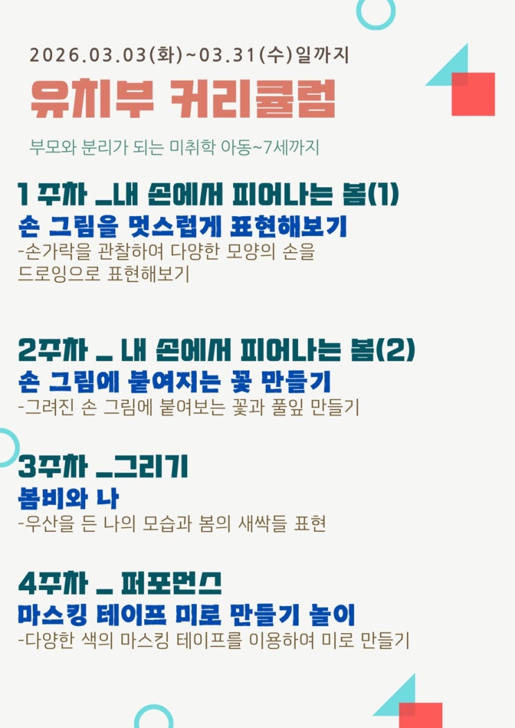[안양평촌호계동미술학원]아티움미술_유치부 26년 3월 커리큘럼