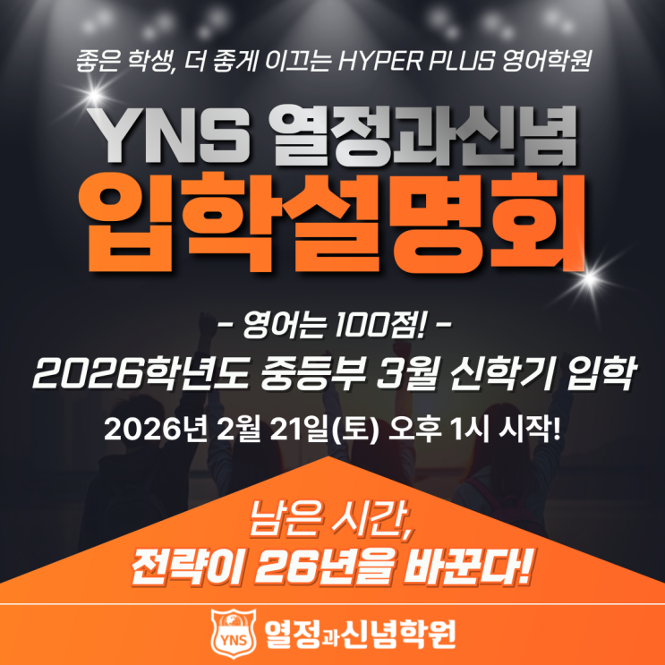 [평촌영어학원] YNS열정과신념 중등부! 2026학년도 3월 신학기 입학 설명회! YNS에서 영어는 100점! 2월 21일(토) 초대합니다!