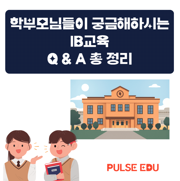안녕하세요. 펄스에듀입니다. 최근 학교 현장에서 가장 많이 들리는 교육 키워드가 바로 IB교육입니다. 오늘은 학부모님들의 궁금증을 해결해드리기 위해 IB교육 관련하여 많이 질문해 주시는 부분들을 정리해보고자 합니다. 처음 접하는 학부모님들께서도 쉽게 이해하실수 있도록 교육변화, 평가방식, 사교육 영향 등에 대해서 쉽게 정리하였으니 IB교육이 궁금하시다면 꼭 정독해보시길 바랍니다. 학생 개개인의 성향을 고려한 별도의 커리큘럼과 1:1 강사 배치! 체계적인 국제학교 입학시험 대비와 전문적인 컨설팅 입학 이후 적응을 위한 AP / IB Diploma 교육과 디베이트 수업 대입 준비를 위한 SAT / ACT 수업 1. IB 교....... <img src="https://blogthumb.pstatic.net/MjAyNjAxMTRfMTk5/MDAxNzY4Mzg0MDE4Mzk4._0qCt8LHyxJ-89yXljOs8wpuFHGFdMpuOy3D9pjRrPsg.sfVUubewGXtOtaPBNFTD_dw6JmCxNEDuOSPLQi13J7Ug.PNG/image.png?type=s3" />