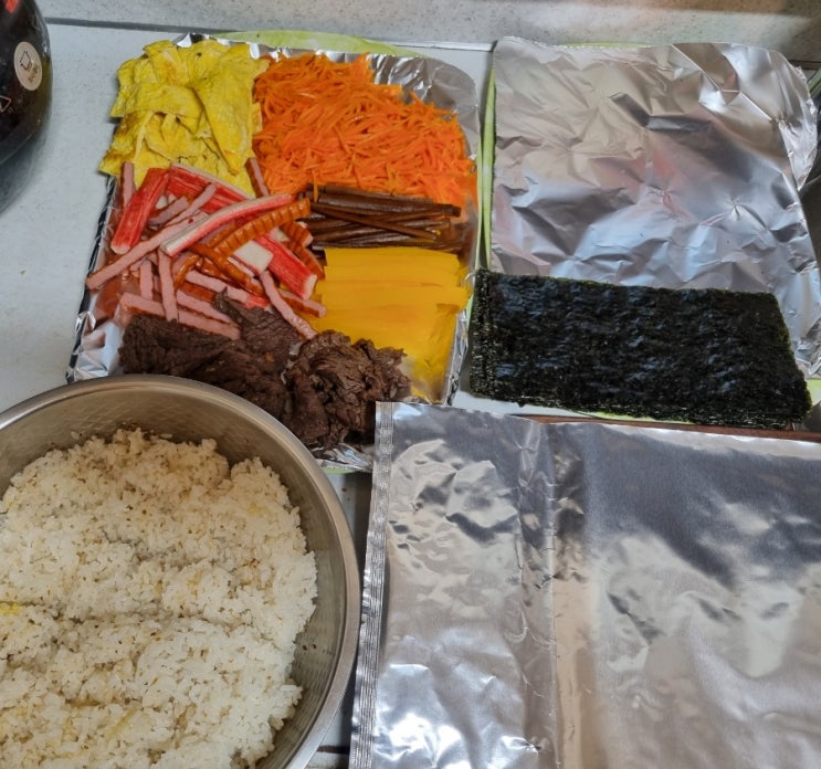 # 3월 준비 출근하지 않는 월요일 느긋하게 일어나 스트레칭을 했다. 그리고 쿠팡맨이 주고 가신 먹거리를 수거했다. 점심 메뉴로 김밥을 하려고 주문했는데 아침 메뉴로 변경을 했다. <<김밥 만들기>> 김밥은 밥이 제일 중요하다. 밥을 할 때 참기름, 소금,다시마를 넣어야 밥이 맛있다. 밥이 되는 시간 동안 당근을 볶고 계란을 부쳤다. 맛살과 햄을 살짝 볶으면 더 맛있게 먹을 수 있다. 오늘은 소고기을 넣으려고 양념을 간간하게 하고 볶았다. 김은 반으로 잘라서 사용한다. 옆구리 터지는 것을 예방 할 수 있어서 반씩 사용한다. 재료 준비가 끝나면 밥이 되기를 기다린다. 나는 김밥을 좋아한다. 당근이랑 시금치를 보면 김밥....... <img src="https://blogthumb.pstatic.net/MjAyNjAzMDJfMTY1/MDAxNzcyNDM4ODYzNDI4.zTF6x6mGcLp64w3qoKldL_kwnXzP1LAGdYWBZYcAbz8g.FIjeqRiEdzSJQOtRdOVIp_zSWfzBIeWzrnLE_yMo5D8g.JPEG/900%A3%DF1772438863299.jpg?type=s3" />