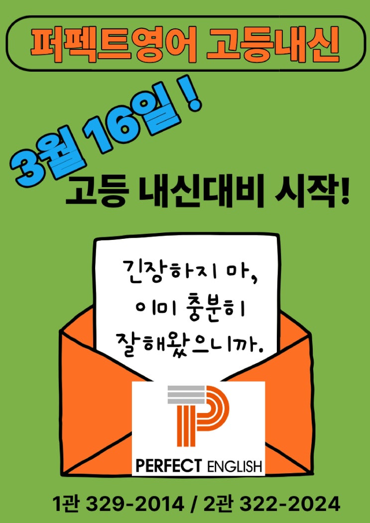 부천 상동 영어 학원 퍼펙트 영어 중고등 내신 대비 안내
