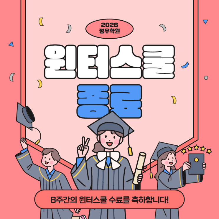 오늘로 1월 5일부터 2월 27일까지 총 8주간의 윈터스쿨이 종료되었습니다. 방학 때, 노는 것이 당연한 공부하지 않는 것이 당연한 이 오정동의 학업 분위기를 바꿔보자 시도한 윈터스쿨 올해는 보증금 환급 제도를 신설하여 새롭게 진행했습니다. 결과는 매우 성공적이었습니다. 정우학원 윈터스쿨이 궁금하다면? [고등부 소식] 정우학원 윈터스쿨 : 네이버 블로그 영단어는 한 번에 외우는 것이 아닙니다. 매일 적당한 양을 꾸준히 하는 것이 중요합니다. 저희 학생들은 8주간 매일 day2에 해당하는 분량을 외워 고등 영단어 1회독을 완료했습니다. (고2의 경우에는 2회독을 완료하였습니다) 또한 본 수업시간에 배운 내용에 대한 복습을 진행하....... <img src="https://blogthumb.pstatic.net/MjAyNjAyMjdfMjkz/MDAxNzcyMTY2NTE2MTUx.JRS1QSnh4TJYznvzsLB06rNQRT1go9VJla7-ra6Lomog.oRxXDHINIhCLpau-PTgO7yiMgDoW62ermdoarX-Oy7kg.PNG/001.png?type=s3" />