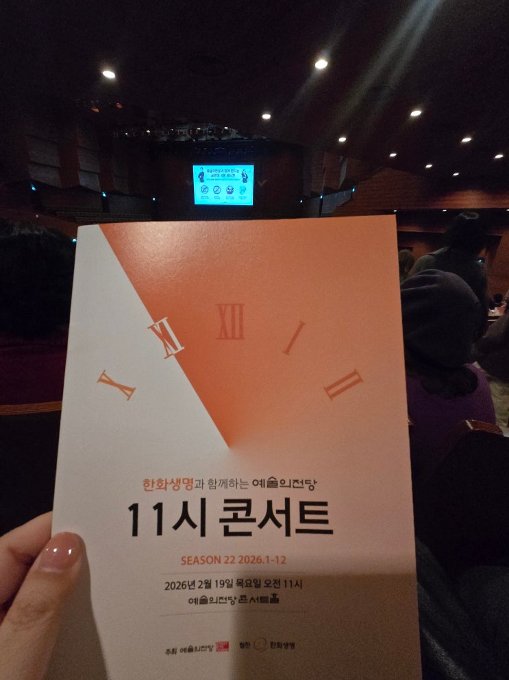 오늘은 작곡반 학생들이 정보형 원장님과 음악회 나들이를 다녀왔습니다. 지하철을 타고 예술의 전당에 가는 길은 낯선 경험이지만 신나는 일인가봅니다. 가기전부터 가는 길을 엄청 공부하더라고요 ㅎㅎ 평소 악보와 음원으로만 접하던 음악을 실제 연주로 경험해 보는, 아주 소중한 배움의 시간이었습니다. 이번에 함께한 공연은 ‘11시 콘서트’로, 편안한 해설과 함께 다양한 곡을 감상할 수 있어 우리 친구들이 클래식 음악을 한층 더 가깝게 느낄 수 있는 프로그램이었습니다. 짜잔~~!!(부럽다....^^) 공연이 시작되자마자 살아 있는 악기의 울림과 공연장의 공기가 전해졌고, 학생들도 자연스럽게 집중하며 “소리의 색깔”을 직접 느끼는....... <img src="https://blogthumb.pstatic.net/MjAyNjAyMTlfMTU4/MDAxNzcxNDc5MTIzMTUx.vGnRrKC5HGe0NCaE-oEwq4IAOOBuucRkyeGAftgVrlQg.Q4xmxRnnbmvwlxz8_i458VDyGnX-NbtZEiyNYfA0xTAg.JPEG/1.jpg?type=s3" />