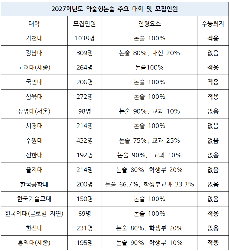 가천대 약술형논술 합격점수 분석, 논술고사 15문제 중 10개 전후 합격선 2026학년도 가천대 약술형논술 경쟁률은 평균 41.57:1. 높은 경쟁률에 겁부터 나나요? 2025학년도 합격 점수를 보면 경영학과는 15문제 중 11.5개, 자유전공은 11개만 맞혀도 합격했습니다. 2025학년도 가천대 약술형논술 합격자의 논술점수를 분석했습니다. 지난 글에서 가천대 약술형논술 경쟁률과 실질 경쟁률에 대해 살펴봤습니다. 2026학년도 수시 기준 가천대 약술형논술 경쟁률은 41.57대 1이었습니다. 즉 41명 중 1명만 합격했다는 거죠. 하지만 수능최저를 맞춘 지원자만을 대상으로 하면 경쟁률이 큰폭으로 하락합니다. https://blog.naver.com/leee8742/224181....... <img src="https://blogthumb.pstatic.net/MjAyNjAyMTRfMjAg/MDAxNzcxMDQ5ODQ2NDUy.Fg7CRDP4M-ipnbUnyLvLPukGpNHPXB3YoF6WauGys5gg.CCaasZerdPwfsIqFv49tZMaqQTcRyAqm1qakP92nTcwg.PNG/%BE%E0%BC%FA%C7%FC%B3%ED%BC%FA_%B4%EB%C7%D0.png?type=s3" />