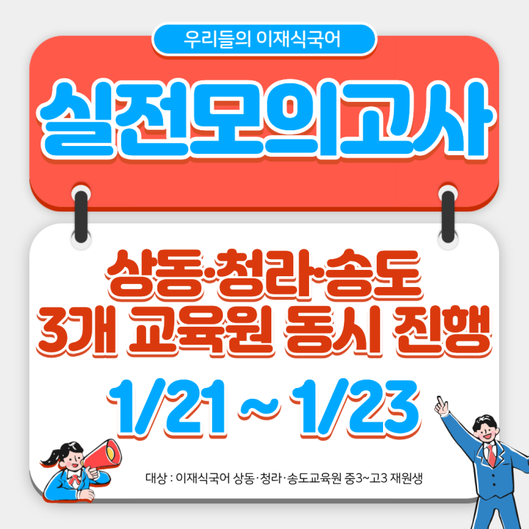 상동 이재식국어] 전 교육원 중3~고3 동시 진행! 1월 21일(수) 실전 모의고사 실시