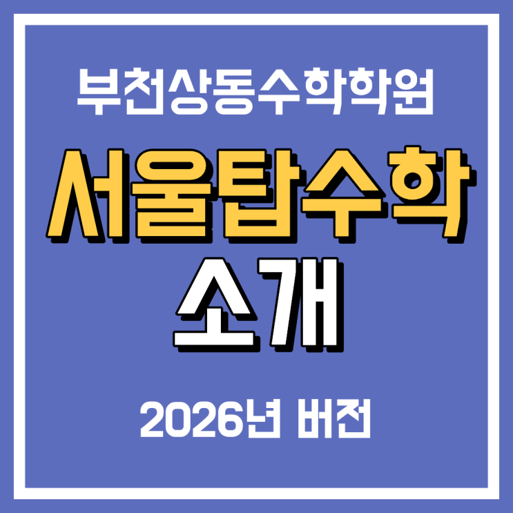안녕하세요. 부천 상동에 위치한 서울탑수학학원 원장 이상원입니다. 저희 서울탑수학은 2025년, 학생과 선생님이 한마음으로 노력한 결과 **'서울대학교 합격생 배출'**이라는 값진 성과를 거두었습니다. 2026년에도 그 성공의 노하우를 이어가고자 학원의 철학과 시스템을 상세히 소개합니다. 목차 원장소개 결과로 증명하는 서울탑수학 성적상승의 원리 수많은 상승사례 시스템 커리큘럼 특장점 시간표 1. 원장소개 이상원 원장 서울대 졸업 (전) 대치 수학적사고 원장 (현) 서울탑수학학원 원장 김병수 원장 서울대 졸업 (전) 목동 길벗아카데미 고등부 (전) 압구정 수학적사고 원장 (전) 부천상동 수학적사고 원장 (현) 서울탑수....... <img src="https://blogthumb.pstatic.net/MjAyNjAxMDVfMjg4/MDAxNzY3NTgwNTM4NTM0.XnQSo6dVo740jOPnyBItvUCJ5bJ4PtIfe_z2JgaKURQg.gcXUixL0xs52ce3aYFJJ_pTw643G5BqN8DazU9HHY4Ug.PNG/%C7%D0%BF%F8%BC%D2%B0%B326%B3%E2v2.png?type=s3" />